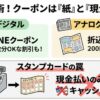 - 地域限定で配布。200円割引券など、最も確実な入手手段。