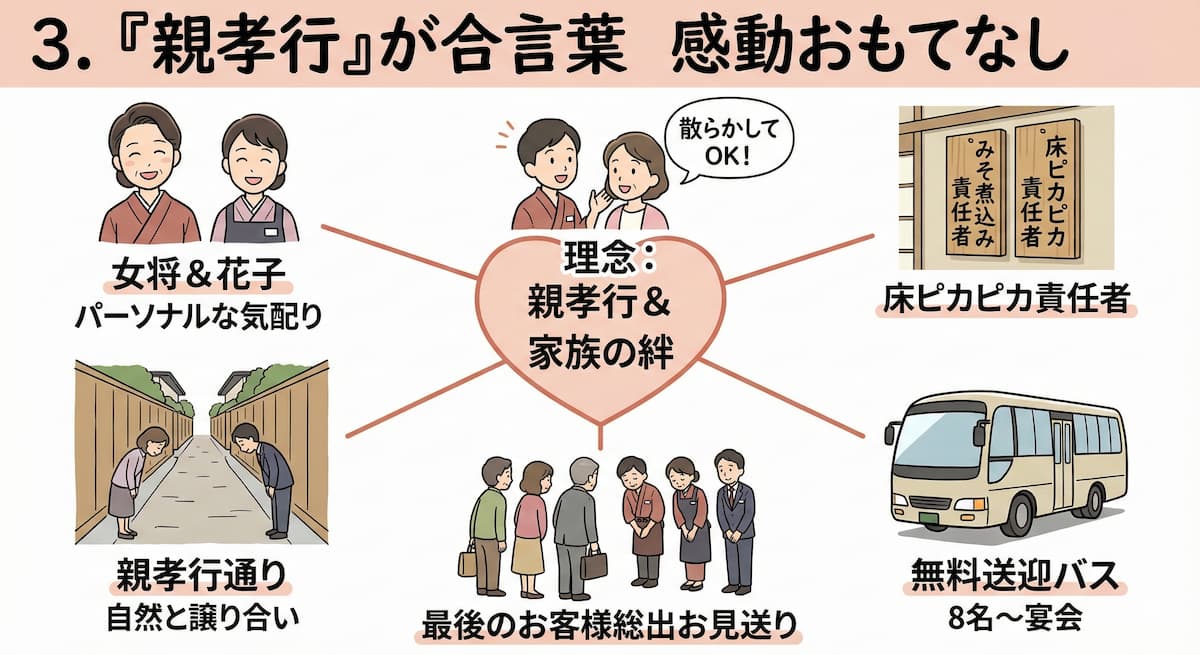 - 女将・花子制度: 接客のプロが各店に常駐し、マニュアルを超えた気配りを提供。