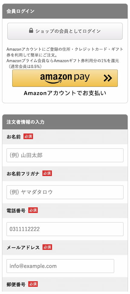 プリロール公式通販の決済レジ(カート)に遷移する前に表示されているAmazonアカウント(Amazon Pay)は、面倒な個人情報の入力は一切なく数クリックで購入できます。