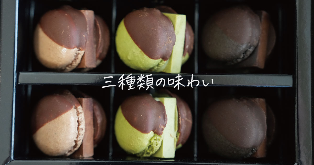 可愛いいでたちながらもそれぞれ強烈な個性を感じる3種類のMAMEIL生チョコマカロン。