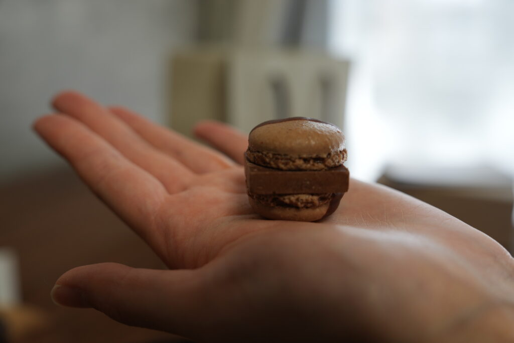 マカロン生地・チョコレートとコーヒーがうまく融合しており、決してくどく感じることなく上品に、かつ濃厚に仕上がっています。