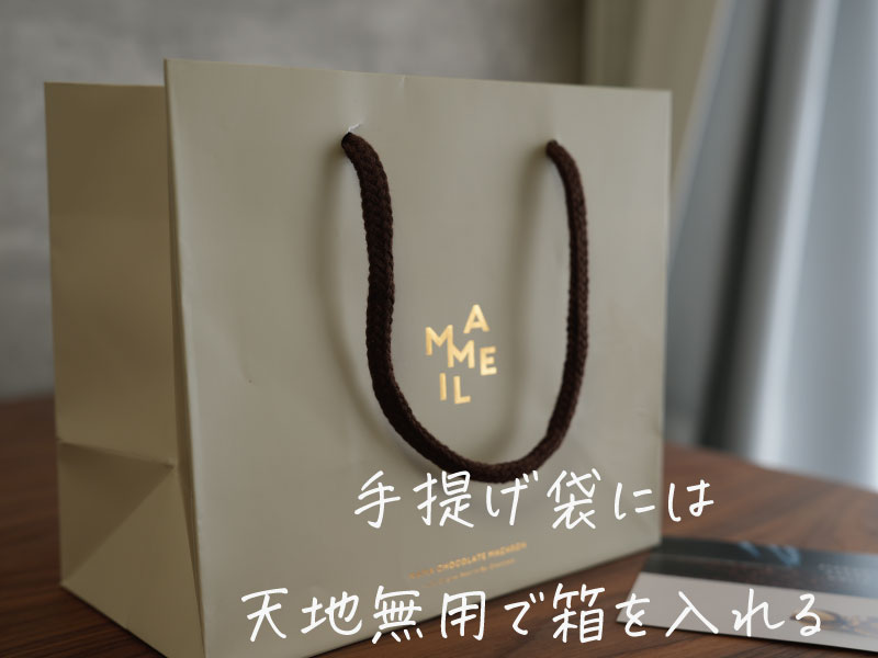 ギフトやプレゼントで贈る際は天地無用(上下をさかさまにしない)でそのまま箱のみを手提げ袋に入れるのがポイントですね。