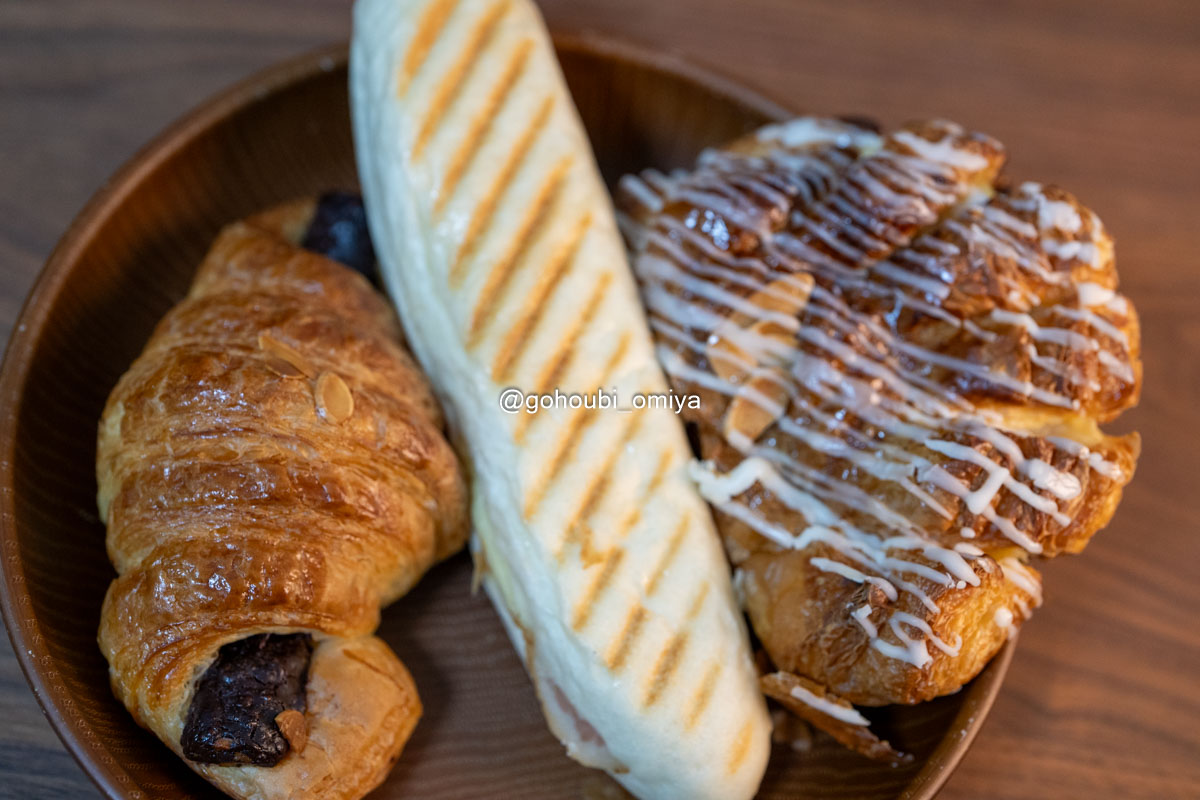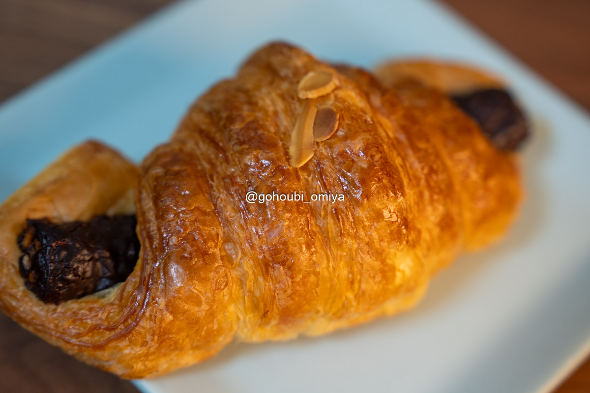サクサクのクロワッサンに外はこんがり、中はしっとりな焼きチョコ棒がはいってお子さん人気が高いです。