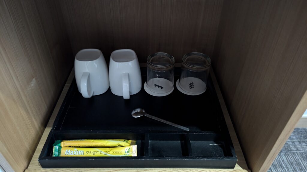 ホテル呉竹荘仁寺洞の時は夕方までの時間限定にて簡易コーヒーメーカーでコーヒーが飲めるだけでしたが、ドーミーイン流のサービスに変わっています。