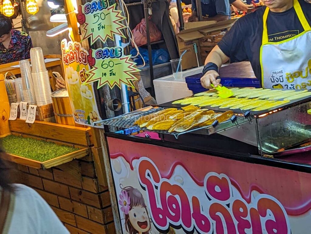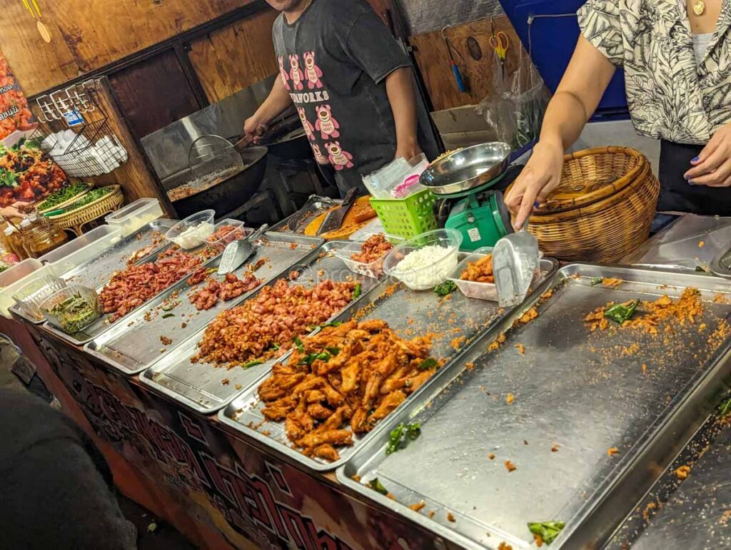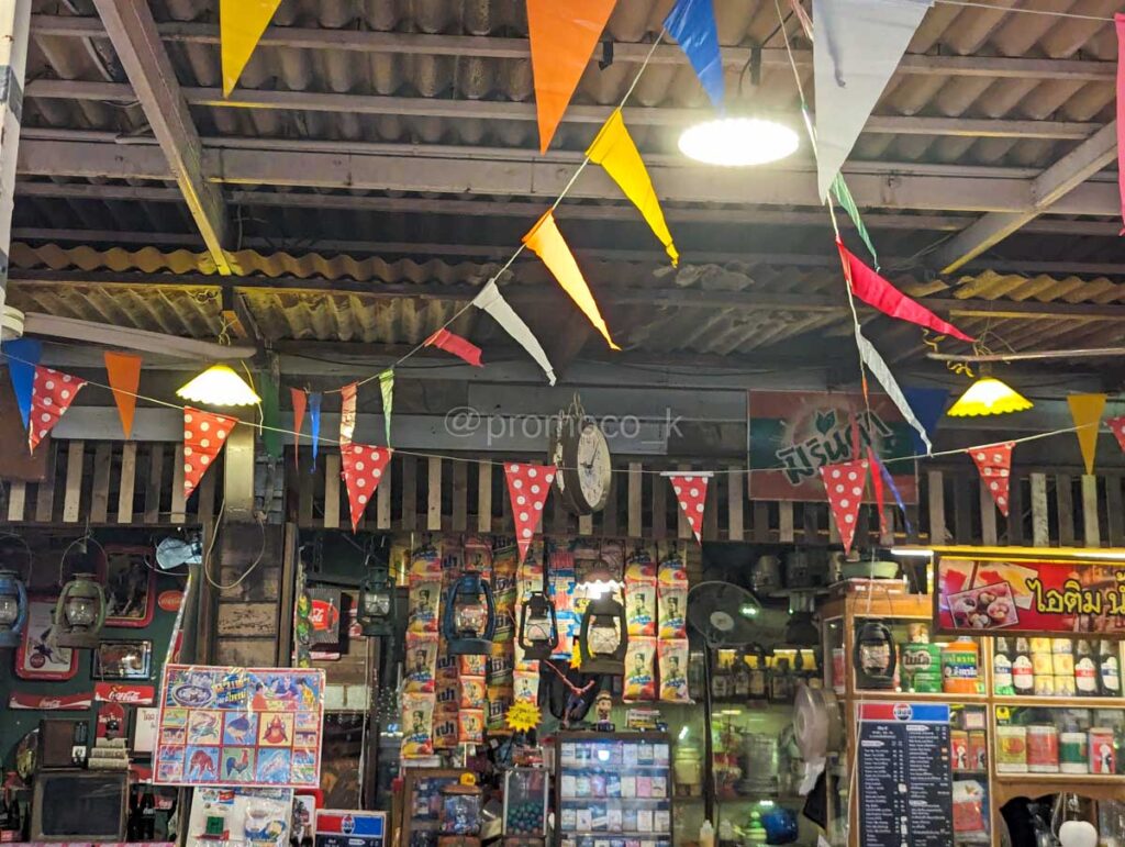 シーナカリン鉄道市場に出店しているほとんどが屋根付き店舗なので雨天時も変わらず楽しめます。